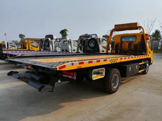 該車平板長度為5.3米(含液壓伸縮加長部份),寬2.22米,3P2A折疊沖壓式平板,帶100CM液壓伸縮式可加長平板。該車采用國標優(yōu)質(zhì)碳鋼花紋板制作,平板由多塊壓制預壓板組成,10根加強型槽鋼橫梁固定,既減輕了整車重量,又增加了托舉和裝載能力。 大承載質(zhì)量為2.5噸,平板 小傾斜角為8度,托舉系統(tǒng)額定托舉質(zhì)量為1.2噸,采用1個4噸液壓絞盤,加粗鋼絲繩20米,一個工具箱,一個洗手箱,該車配備6個綁帶,鏈鉤一條,可選裝LED長排警燈。