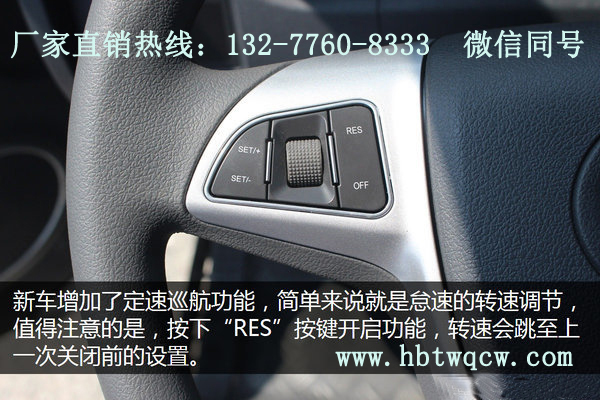 整體風(fēng)格趨向于乘用車的設(shè)計,質(zhì)感提升,用戶好評度更高,并且可后期加裝支持方向盤多功能按鍵操作的原廠大屏影音導(dǎo)航系統(tǒng)。另外可以看到,該國五新車增配了定速巡航功能,按鍵設(shè)置在方向盤左側(cè),操作簡便。