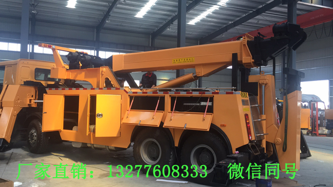 2.起吊功能:托吊型是重型清障車必須有的設備,一般配備可變幅的吊臂,以便將損壞的車輛從一端(或一側)或整臺車吊起,擺正,便于托舉。重型清障車還能利用吊臂的伸縮、變幅,將事故車輛從路基及路基附近的地方牽引或吊到路面上擺正。