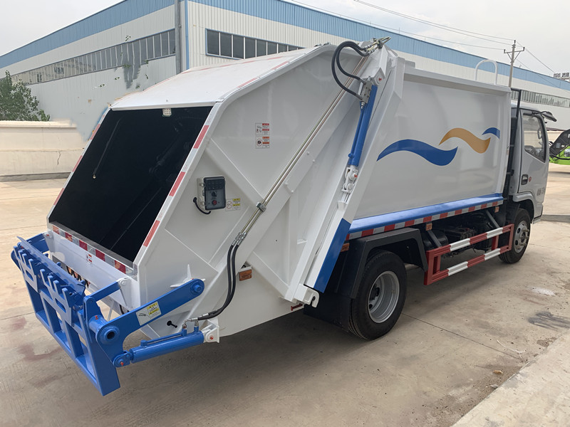 上裝配置:新款平面弧形廂體,廂體材料為武鋼優(yōu)質(zhì)碳鋼邊3底4mm厚,有效壓縮容積5-6立方,9支液壓油缸制動,PLC一鍵操作控制,手電一體操作模式,兩側(cè)雙電控,帶駕駛室內(nèi)操作,底板支撐加強(qiáng),雙向壓縮,開放式易清潔污水箱。壓縮式垃圾車采用機(jī)電液一體化技術(shù),借助機(jī)、電、液聯(lián)合自動控制系統(tǒng)、電腦控制、手動操作系統(tǒng),通過填裝器和推鏟等專用裝置,實(shí)現(xiàn)垃圾倒入、壓碎或壓扁、強(qiáng)力裝填,把垃圾擠入車廂并壓實(shí)和推卸,污水全部進(jìn)入污水廂,解決了垃圾運(yùn)輸過程中的二次污染的問題。壓縮式垃圾車具有自動反復(fù)壓縮以及蠕動壓縮功能,壓縮比高、密封性好、裝載量大﹑操作方便、環(huán)保性好﹑整車?yán)霉β矢叩葍?yōu)點(diǎn)。作業(yè)自動化,垃圾收集方式簡便、高效。后翻轉(zhuǎn)機(jī)構(gòu)選裝:1、掛塑料桶式翻轉(zhuǎn)機(jī)構(gòu);2、掛鐵桶式翻轉(zhuǎn)機(jī)構(gòu),可掛標(biāo)準(zhǔn)塑料桶240/660升;3、擺臂式翻轉(zhuǎn)機(jī)構(gòu); 4、簸箕斗式翻轉(zhuǎn)機(jī)構(gòu)。