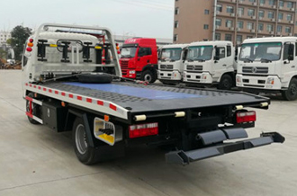 (1)老款伸縮尾板:一拖二型(3P1)沖壓式平板,板上開孔,平板長度為4.2-4.3米,寬2.3米,后部一塊1米長的液壓伸縮尾板,加裝前配重。雙側(cè)聯(lián)動(dòng)操作裝置,1個(gè)4噸液壓絞盤(25米鋼絲繩),1~2個(gè)工具箱(根據(jù)底盤空間制作),L型托叉一對(duì),拖叉一對(duì),拖叉座一對(duì),擋胎2個(gè),2個(gè)輔助輪小車,4根綁帶,一個(gè)洗手箱,鏈鉤一條,帶液壓自動(dòng)式伸縮尾板,加前配重,帶后托舉(可選擇不帶后托舉)。