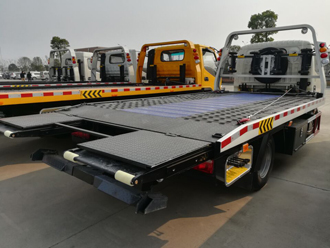 該車(chē)平板長(zhǎng)度為5.3米(含液壓伸縮加長(zhǎng)部份),寬2.22米,3P2A折疊沖壓式平板,帶100CM液壓伸縮式可加長(zhǎng)平板。該車(chē)采用國(guó)標(biāo)優(yōu)質(zhì)碳鋼花紋板制作,平板由多塊壓制預(yù)壓板組成,10根加強(qiáng)型槽鋼橫梁固定,既減輕了整車(chē)重量,又增加了托舉和裝載能力。 大承載質(zhì)量為2.5噸,平板 小傾斜角為8度,托舉系統(tǒng)額定托舉質(zhì)量為1.2噸,采用1個(gè)4噸液壓絞盤(pán),加粗鋼絲繩20米,一個(gè)工具箱,一個(gè)洗手箱,該車(chē)配備6個(gè)綁帶,鏈鉤一條,可選裝LED長(zhǎng)排警燈。