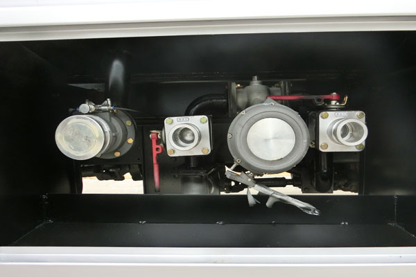 罐體實(shí)際容積14.5立方,方圓罐,脹形封頭,采用優(yōu)質(zhì)碳鋼板材制作,罐體材料厚度以設(shè)計(jì)為準(zhǔn), (帶80-60泵可以自吸自排)泵進(jìn)出口按裝在正駕駛室一側(cè),兩個(gè)歐標(biāo)罐口,一個(gè)海底閥帶報(bào)警裝置,一個(gè)防溢流探桿及插座、一個(gè)廢氣回收、一個(gè)下裝油副駕駛一側(cè),升降護(hù)欄,配一個(gè)防火帽,靜電帶,兩根等長(zhǎng)的輸油管帶陰陽接頭,兩個(gè)滅火器,兩個(gè)堵頭,帶后爬梯,鋼絲網(wǎng)走道,一個(gè)工具箱,安全告示牌,其它標(biāo)配?蛇x裝大流量加油機(jī)及帶15米自動(dòng)回位卷盤及油槍裝在大梁側(cè)邊。