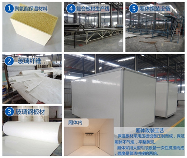 3.保溫箱體內(nèi)部可選裝側(cè)開門,通風槽,肉鉤導(dǎo)軌,廂內(nèi)隔板,雙溫制冷機組,備用電源設(shè)備,溫度記錄儀設(shè)備,箱體護板。