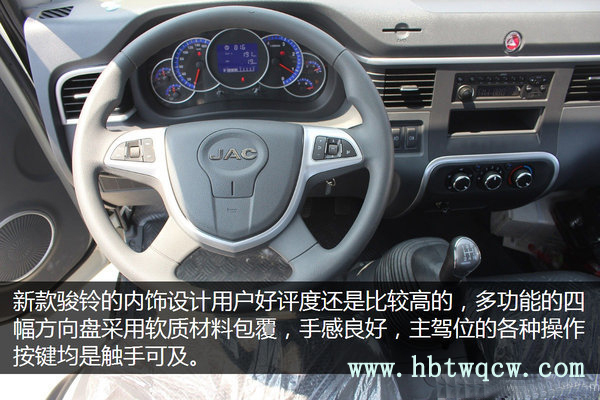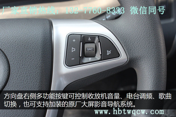 整體風(fēng)格趨向于乘用車的設(shè)計,質(zhì)感提升,用戶好評度更高,并且可后期加裝支持方向盤多功能按鍵操作的原廠大屏影音導(dǎo)航系統(tǒng)。另外可以看到,該國五新車增配了定速巡航功能,按鍵設(shè)置在方向盤左側(cè),操作簡便。